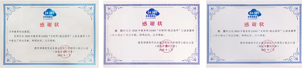 喜讯 | 教育部高校学生司给雨燕直播集团和万学高管颁发了重磅感谢状